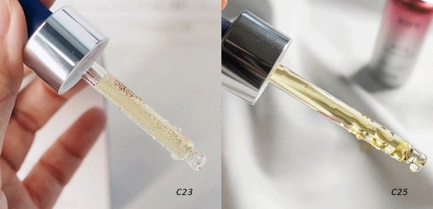 Both serums can be used morning and night, however C25 serum recommends for night (in their website, however not by beauty consultants – both okay they said). I also applied AM with sunscreen and it went well. If you are worried then use at night.