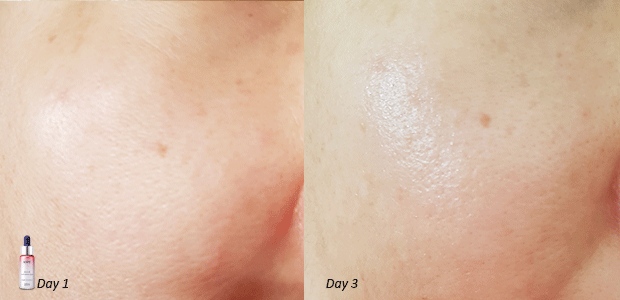 This time, using Vitamin C25, this is my 3 day photo – will update in 4 weeks. 23ml is used for 1~2 month, and I look forward to seeing the result.