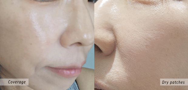 Very comfortable and breathable – it applies thinly and feels hydrating on my skin. Great thing is that it makes my skin almost ‘Jello’ skin – unlike greasy & oiliness, it creates a glowy-looking and more plumped complexion as if I have a moisture super-charged skin.