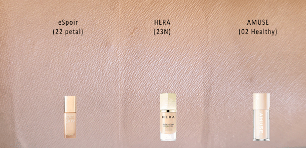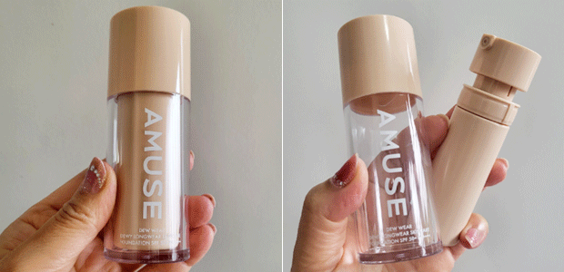 Have compared with other glow foundations and AMUSE Dew Wear has a jelly-like, dense texture compared to others, and the color is neutral yellow tone.